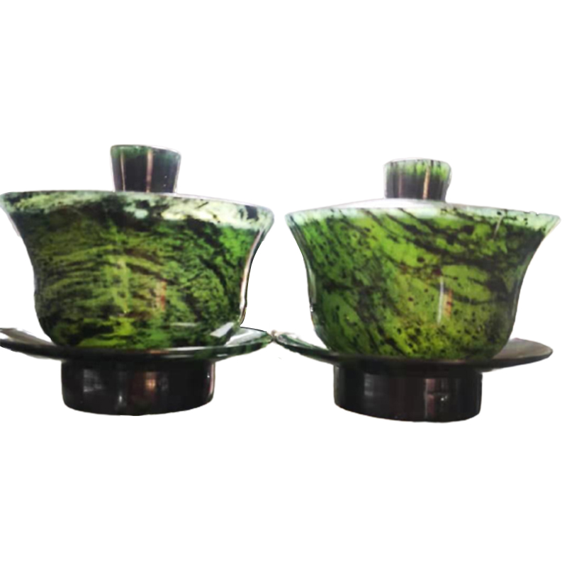 酒泉其他蛇纹玉墨玉精品两只装小高脚杯甘肃特产鸳鸯玉厂家直销